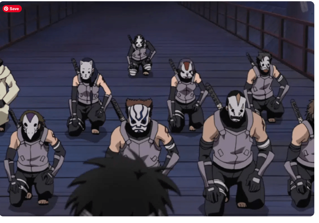 Here we are. An elite group of shinobi from the leaf who are assigned to one core mission – reconnaissance and assassination. They are the equivalent of an intelligence agency in today’s world. The ANBU operate in the dark. Their identity is a mystery and they take part in covert missions to protect the leaf. They are highly skilled in taijutsu, ninjutsu, and some are weapon specialists. In reality they are black ops military operatives who take on the toughest missions. Some notable members include Itachi and Yamato as well as Kakashi. They protect the Hokage and take out anyone who is a direct threat to the leaf.